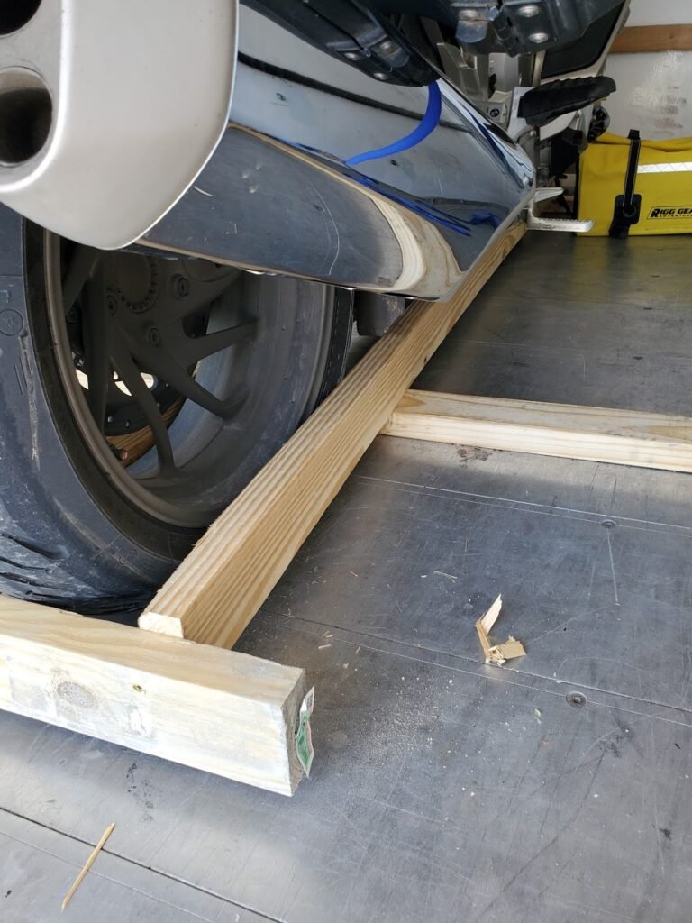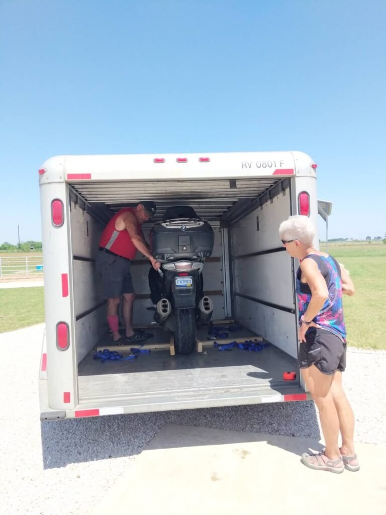 There were a few anxious moments before and during loading, but all went well and Beamer was ready for the trip home.