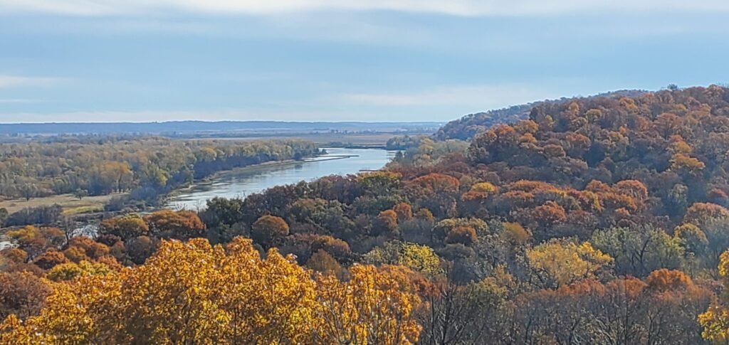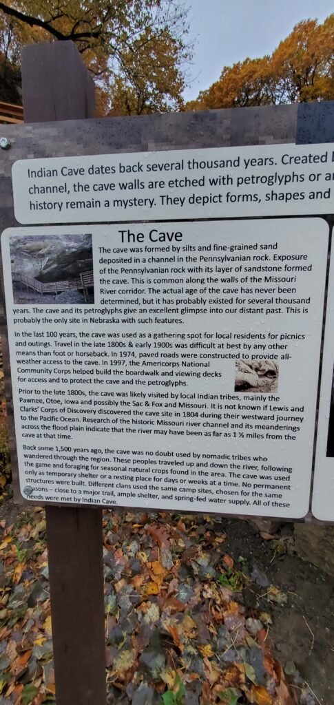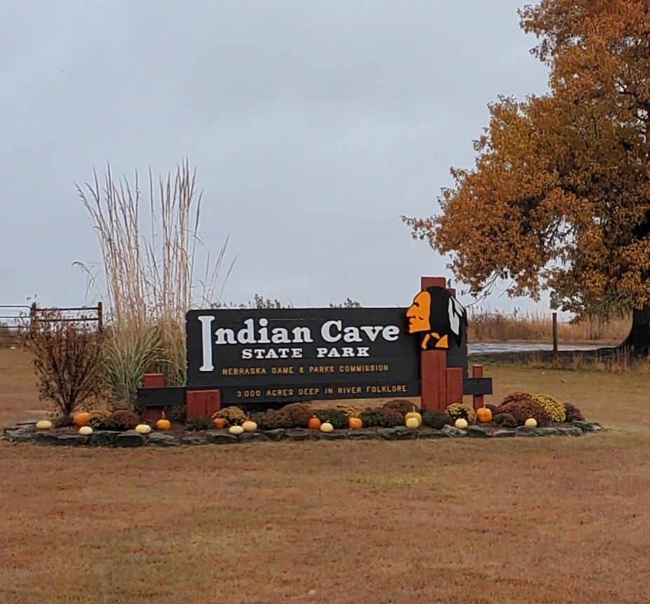 We were able to camp right on the Missouri River. Named for the large sandstone cave within the park, Indian Cave State Park encompasses 3,052 rugged acres. Very very hilly. Trails for hikers as well as equestrians . It is so amazing being able to pull into these state parks with no reservations and get such beautiful places to camp. The off season is the best time to travel.
